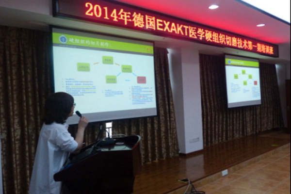 ? ? ? ?為了讓用戶更好地掌握好這套設備的技術應用,相互交流和學習硬組織切磨片的制備方法及經(jīng)驗,德國EXAKT公司北京代表處暨北京共贏聯(lián)盟國際科技有限公司于2014年5月18-20日在重慶醫(yī)科大學口腔醫(yī)學院舉辦了為期3天的第一期“德國EXAKT醫(yī)學硬組織切磨技術培訓班”,特別聘請德國EXAKT公司的技術專家和北京301醫(yī)院口腔研究所、北京大學口腔醫(yī)院中心實驗室、上海瑞金醫(yī)院傷骨科研究所、中科院古脊椎與古人類研究所等國內(nèi)專家為用戶學員們培訓和交流。