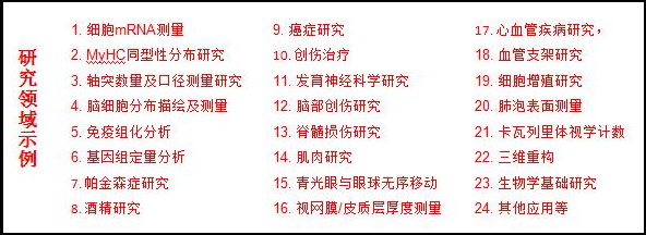 11.多種格式的圖像輸出保存。還可保存為內(nèi)含矯正信息的BIF 圖像,直接用于分析研究,無需額外校正設置。還可保存為不含校正信息的格式bitmap 或jpeg。保存為含分析測量信息圖像的格式SVG。