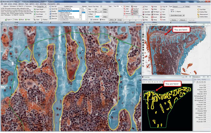BIOQUANTOSTEO骨組織生物學(xué)研究系統(tǒng)擁有內(nèi)置軟件使用向?qū)?,自?dòng)化采圖并拼接為高分辨率大圖,支持圖像三維重構(gòu),支持MicroCT、2D X-RAY、掃描儀、數(shù)字相機(jī)等來(lái)源的圖像分析,多通道熒光圖像合成及分析,自動(dòng)化熒光標(biāo)記測(cè)量,任何放大倍數(shù)下都可以捕獲圖象,圖片剪輯功能使之成為單個(gè)的高象素圖片,將剪輯圖片縮小到一個(gè)單獨(dú)的視野中,校準(zhǔn)數(shù)據(jù)存儲(chǔ)在剪輯圖片中,骨樣的自動(dòng)劃線(xiàn)標(biāo)記工具,自動(dòng)測(cè)量標(biāo)記的閾值,顯示動(dòng)態(tài)計(jì)算,結(jié)構(gòu)自動(dòng)分析,簡(jiǎn)便易學(xué)的操作界面,各類(lèi)骨組織及植入物測(cè)算,方便查找的數(shù)據(jù)輸出及數(shù)據(jù)庫(kù)管理工具。