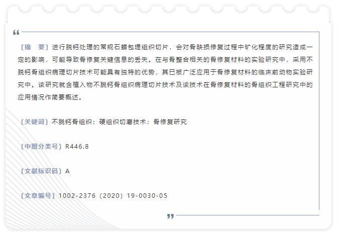 盡管存在難點,但含植入物不脫鈣骨組織病理切片技術(shù)和組織染色方法已成為評價骨整合的重要研究手段和不可或缺的一部分。