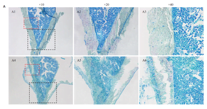 圖4 脫塑前加熱切片可降低水化后脫片率而不影響甲苯胺藍(lán)染色結(jié)果